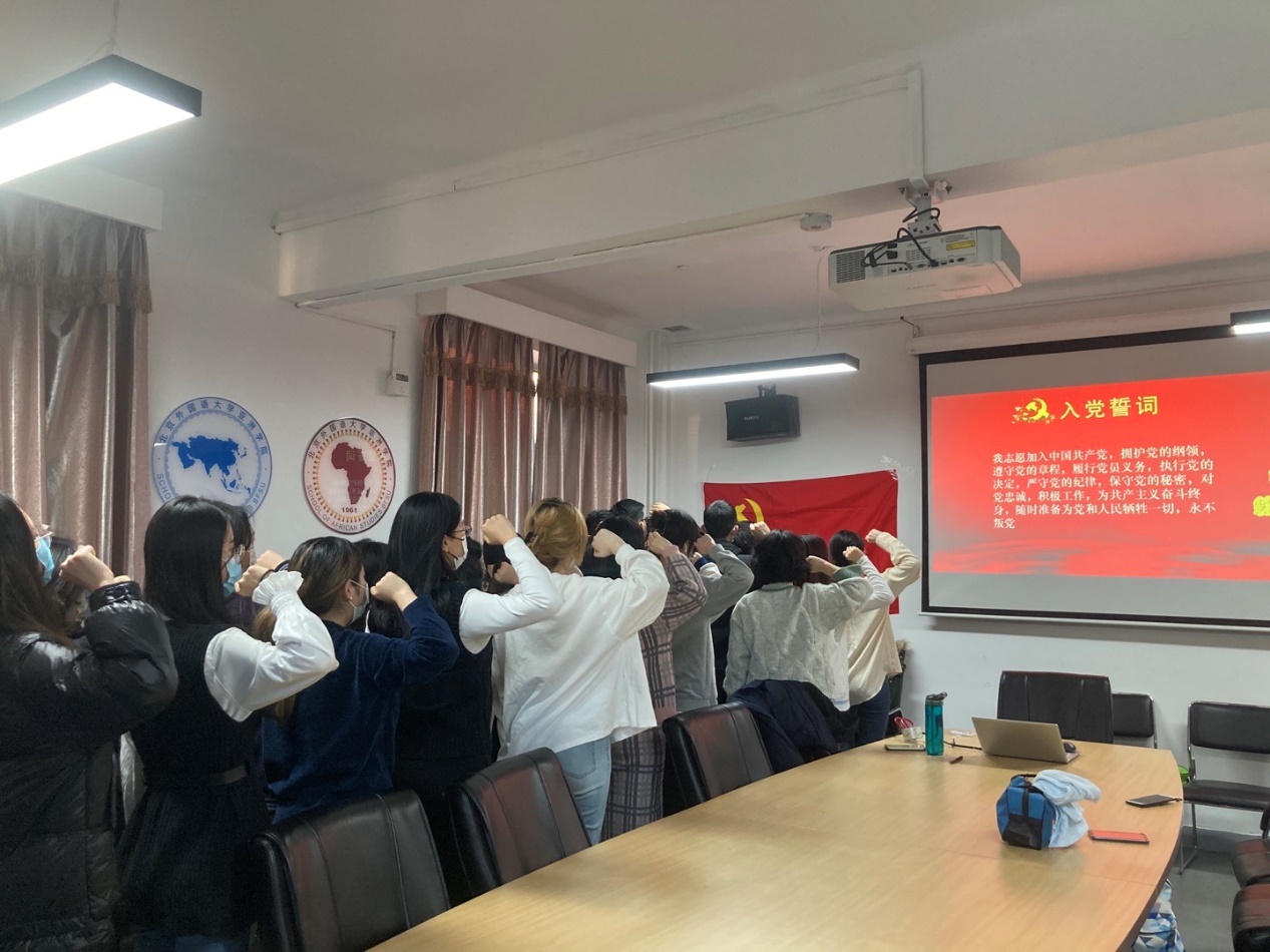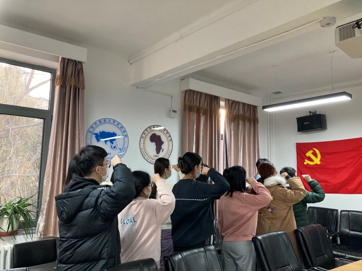 2021年12月3日和12月8日,开云kaiyun体育、非洲学院本科生党支部在主楼344会议室举行预备党员宣誓仪式,本科生党支部书记郝雪妮出席仪式,2021年度发展的预备党员以及老党员参加会议,仪式由本科生党支部宣传委员李源毓主持。