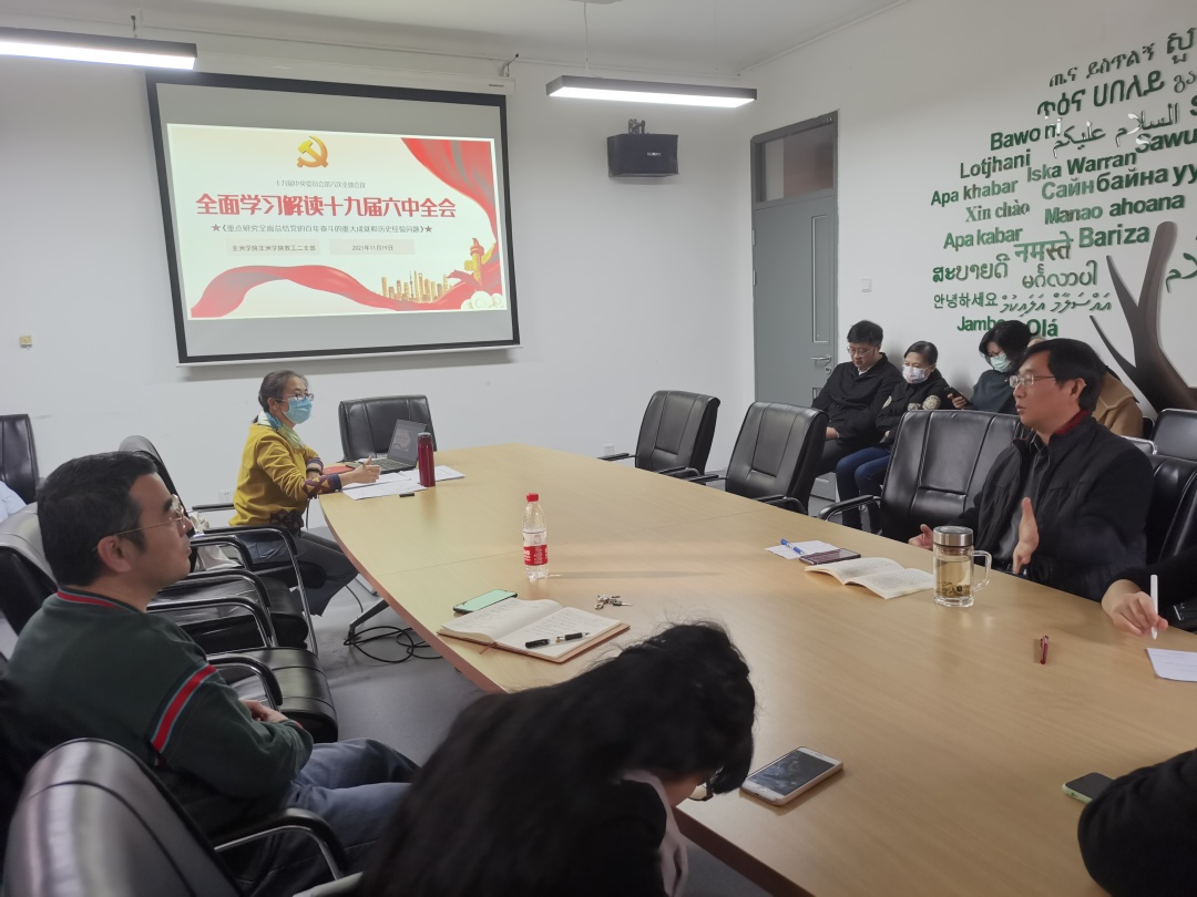 2021年11月19日,开云kaiyun体育、非洲学院党总支四个支部分别召开了专题学习会,深入学习贯彻党的十九届六中全会精神。