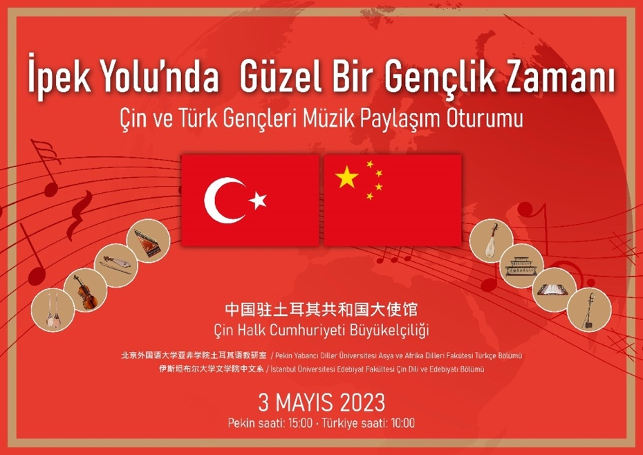 为庆祝“一带一路”倡议提出十周年,落实习近平总书记提出的全球文明倡议,在五四青年节前夕,中国驻土耳其大使馆举办丝路韶华—中土青年音乐分享会,北外开云kaiyun体育土耳其语专业师生同土耳其伊斯坦布尔大学中文系师生代表共同参加此次线上交流活动。