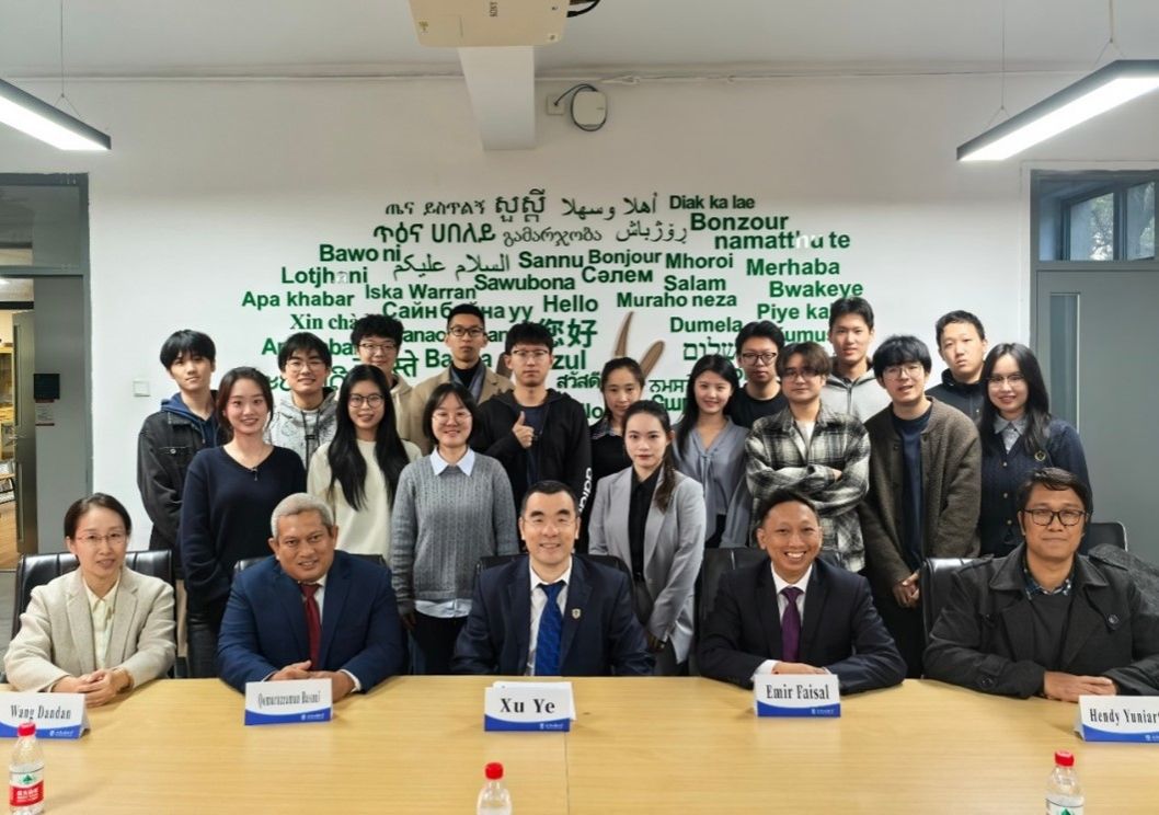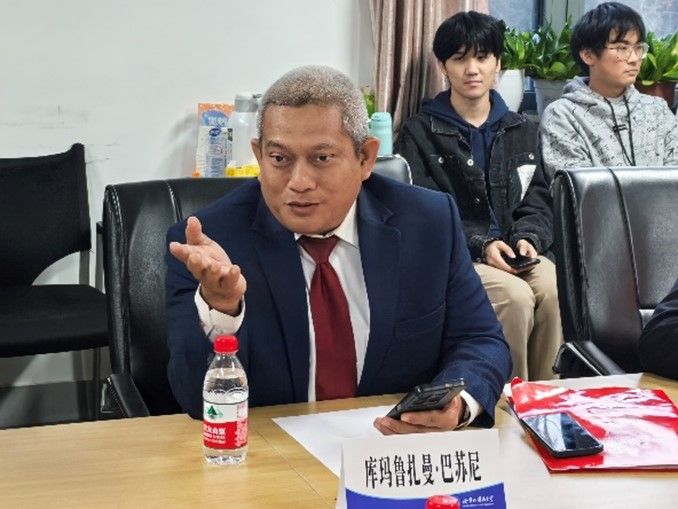 来访期间,库玛鲁扎曼·巴苏尼参赞一行与2021级印尼语专业的师生们进行了深入交流。同学们用流利的印尼语分享了他们在语言学习、留学生活和文化交流方面的收获。印尼语专业教师王丹丹、刘洋和外籍教师汉迪参与接待。