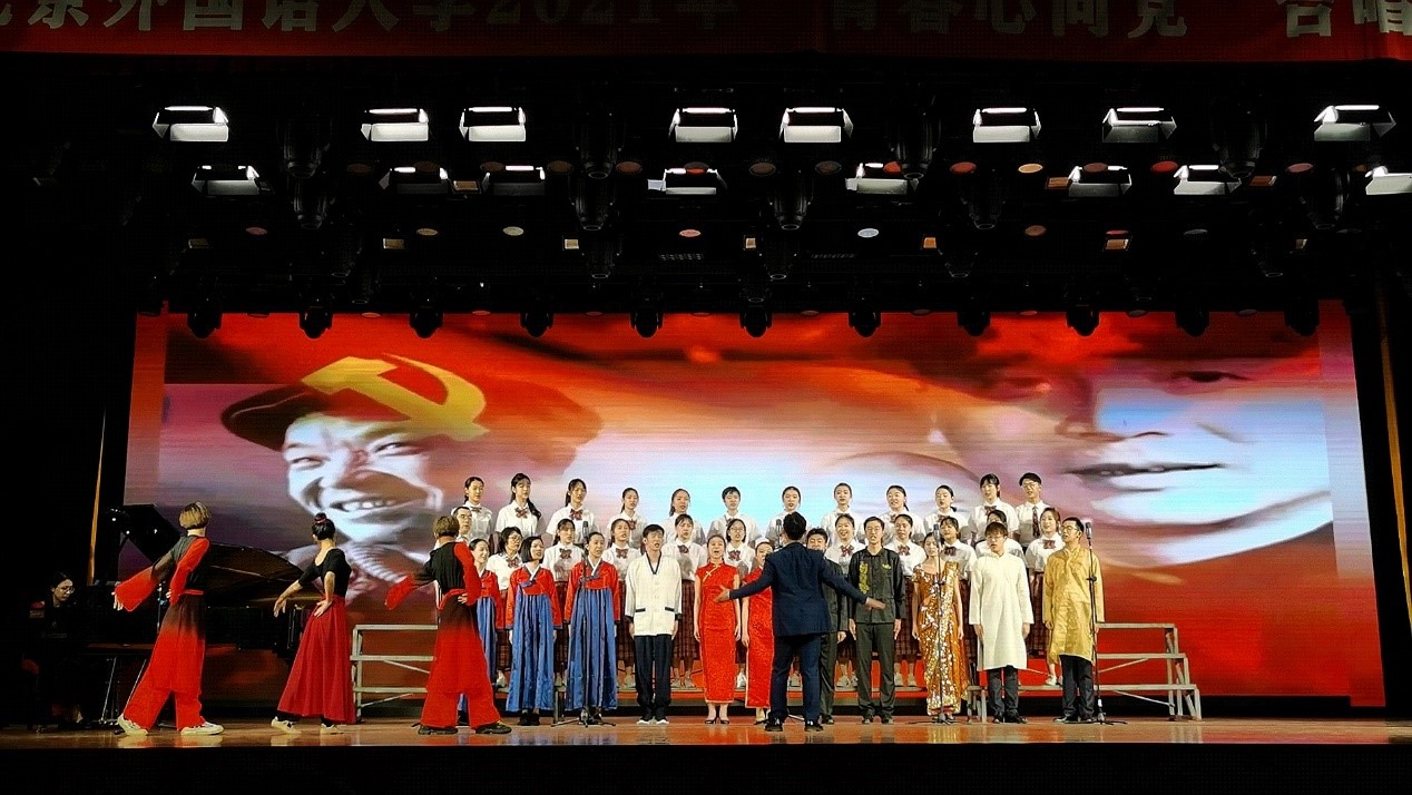 2021年6月2日, 开云kaiyun体育、非洲学院师生在开云kaiyun体育2021年“青春心向党”合唱比赛中,唱响多语种《国际歌》,献礼建党一百周年、校庆八十周年与院庆六十周年。开云kaiyun体育、非洲学院党总支书记许晔,宣传委员周利群等两院师生共41人参加了此次合唱活动。
