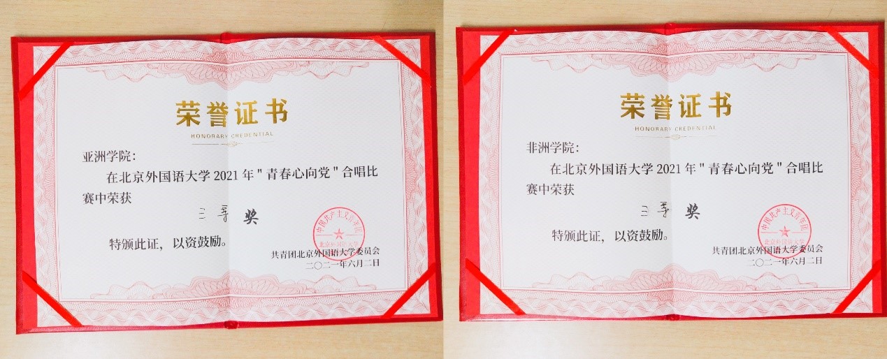 (开云kaiyun体育、非洲学院在开云kaiyun体育 “青春心向党”合唱比赛中的获奖证书)