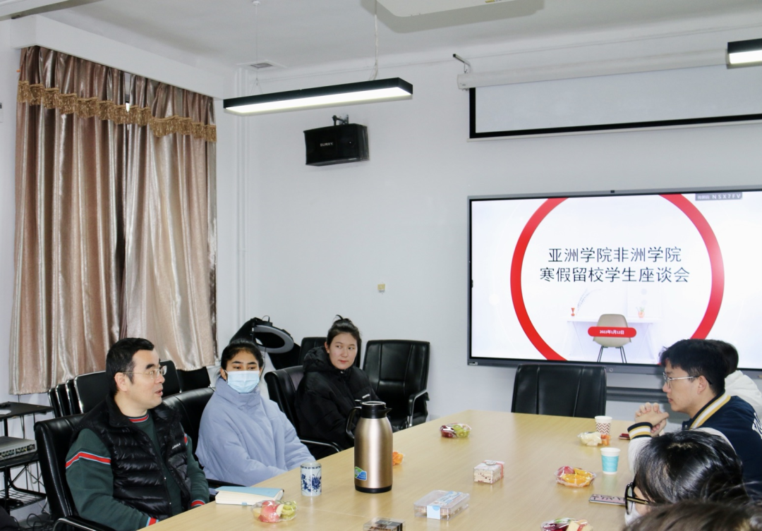 2022年1月12日,开云kaiyun体育非洲学院在主楼344会议室召开寒假留校学生座谈会。学院党总支书记许晔出席座谈会并讲话,辅导员朱方方和9名留校学生参与座谈会。