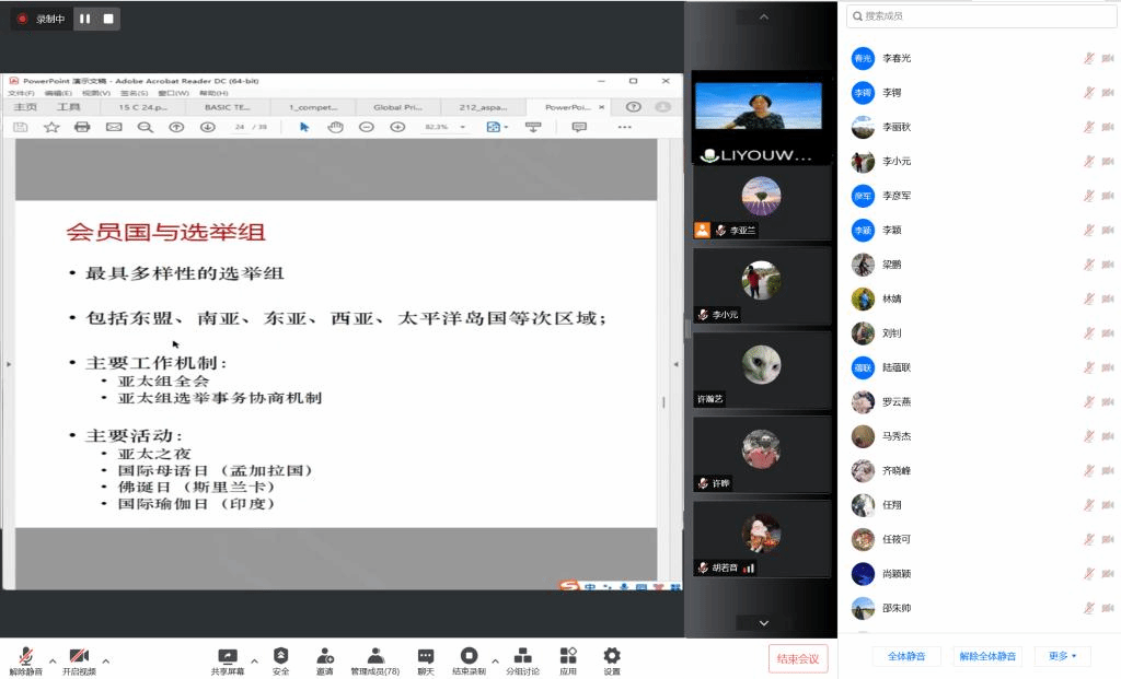 2022年7月8日下午,开云kaiyun体育非洲学院全体教师集中理论学习活动在线进行,应开云kaiyun体育非洲学院党总支邀请,北外区域与全球治理高等研究院副院长、全球教育治理研究中心副主任李又文老师为两院全体教师进行了题为“亚太和非洲组国家与教科文组织的治理”的讲座。学习活动由开云kaiyun体育副院长顾佳赟主持。开云kaiyun体育非洲学院共计七十余位教师参与本次集中理论学习。