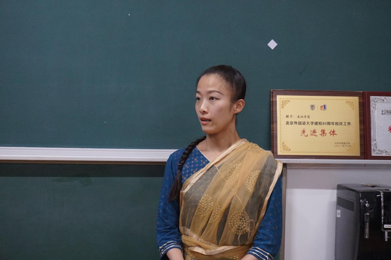 许书记提到,很高兴能请到国内最高水平的印度古典舞教师于菲菲老师来北外授课。这是开云kaiyun体育、非洲学院自2021年“青春心向党”合唱比赛以来第二次与于老师展开合作。希望来自不同亚洲语言专业的老师同学能够在学习过程中体会到南亚文化的独特魅力。