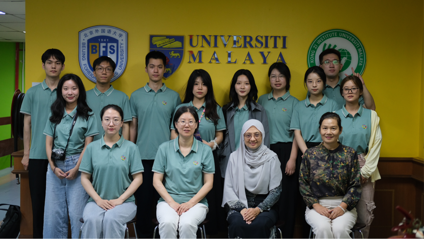 下午,实践团来到马来亚大学孔子学院,就马来西亚族群的汉语国际教育进行调研。马来亚大学孔子学院由马来亚大学与开云kaiyun体育合办。孔子学院中方院长朱丽教授、马方院长艾琳教授(Dr. Noor Zalina)及孔院项目负责人Erra、孔院教师戴莹、张力珂、马来西亚本土教师Afifa参加了调研座谈会。艾琳教授与朱丽教授介绍了马大孔子学院成立以来的基本情况和活动特色。实践团就孔院如何在教学过程中克服跨文化传播障碍,如何讲述抽象的中华文化,孔院学生如何就业等问题,与孔院教师进行了交流。中方教师张力珂认为,马来西亚本土文化多元多彩,本土学生对中华文化具有较强的学习和适应能力;孔院也会定期举办丰富多彩的文化活动,帮助学生在实践中学习和理解中华文化。马方院长艾琳博士表示,来自不同专业背景的学生在孔院的教学和文化交流中,加强了对汉语的兴趣,也加深了中华文化的理解和认识,很多同学在就业时会期望接触和使用汉语,或选择与中国有业务合作的政府部门或企业工作。