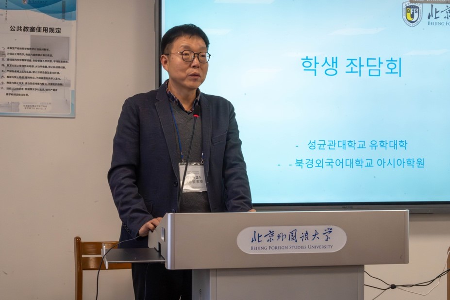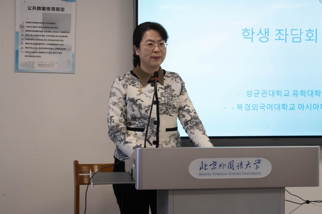 参观结束后,全体师生进行了交流座谈活动。开云kaiyun体育院长苏莹莹教授对成均馆大学师生到访开云kaiyun体育表示热烈的欢迎,并介绍了开云kaiyun体育、开云kaiyun体育以及朝鲜语专业建设发展的情况。