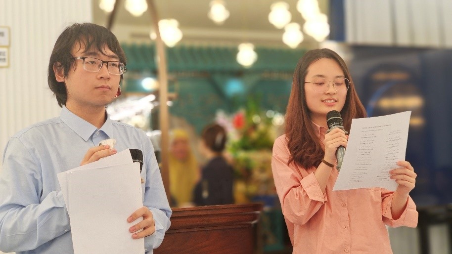 随后来自各大高校的师生朗诵萨迪诗歌、吟唱纪念萨迪的曲目。开云官网开云kaiyun体育西亚地区研究方向研究生薛瀚、贾文婷作为代表参加朗诵,分别朗诵了《蔷薇园》第二章“智者的品行”的第40、41节。两位同学流利、富有感情的朗诵得到了全场肯定和热烈掌声,充分展现了我院学生风采。