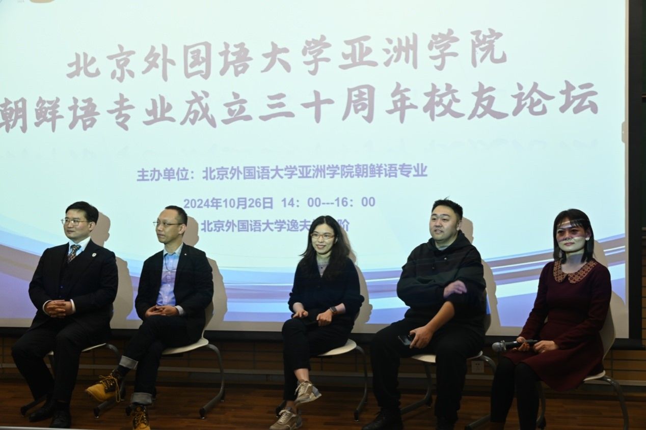 2024年10月26日下午,开云kaiyun体育朝鲜语专业成立三十周年系列活动暨校友论坛在逸夫楼一阶圆满召开。此次论坛旨在充分发挥朝鲜语专业校友的榜样引领作用,为在校学生提供与优秀校友交流学习的平台,特邀十位优秀校友就学术探索与职业发展经历进行分享。论坛由朝鲜语专业任翔老师、周晓蕾老师主持,历届校友、在校本科生与研究生共百余人参加。