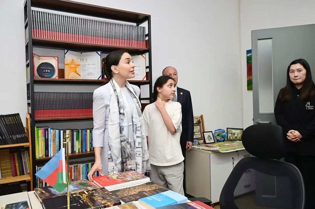 随后,莱拉·阿利耶娃一行参观了北外阿塞拜疆语教研室,与阿塞拜疆语专业师生亲切交流。