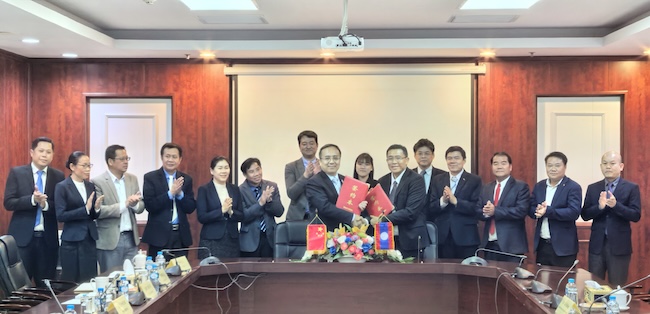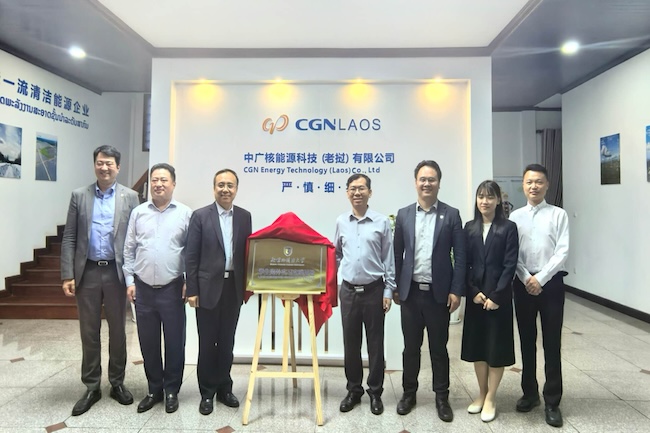 代表团还访问了中广核能源技术(老挝)公司。公司执行董事曾勇、董事吴兴华接待了代表团一行。双方就学生海外就业实习、强化人才储备、输送国际学生等事项交换了意见,共同签署《人才培养合作协议书》,并为“开云kaiyun体育学生海外实习实践基地”揭牌。