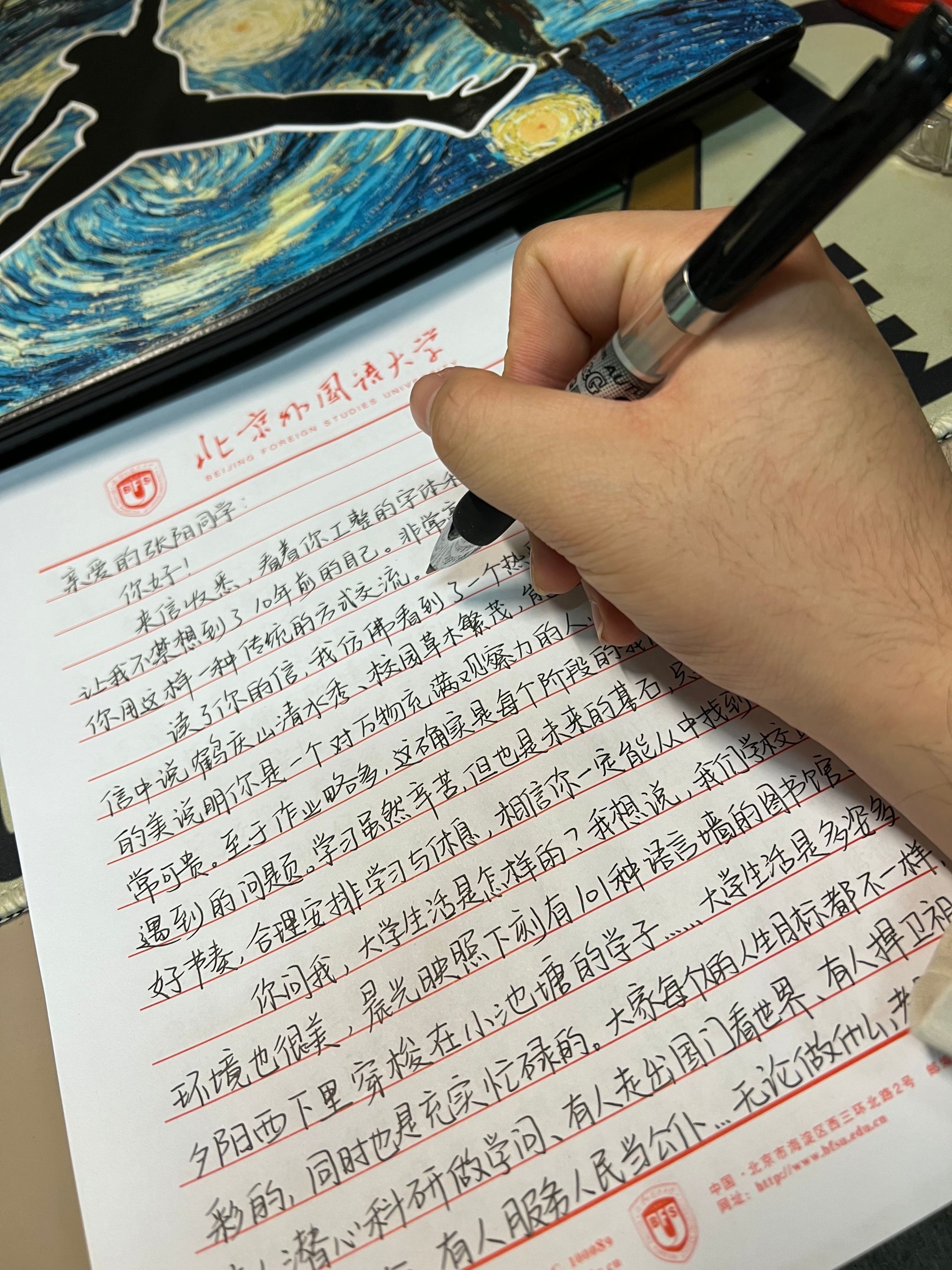 对此,同学们认真阅读学生来信,或分享语言学习的经验与方法,或讲述家乡文化的独特魅力,或探讨未来职业规划与人生梦想,以亲切真诚的语言、丰富多样的内容为远方学子送去鼓励与启发。