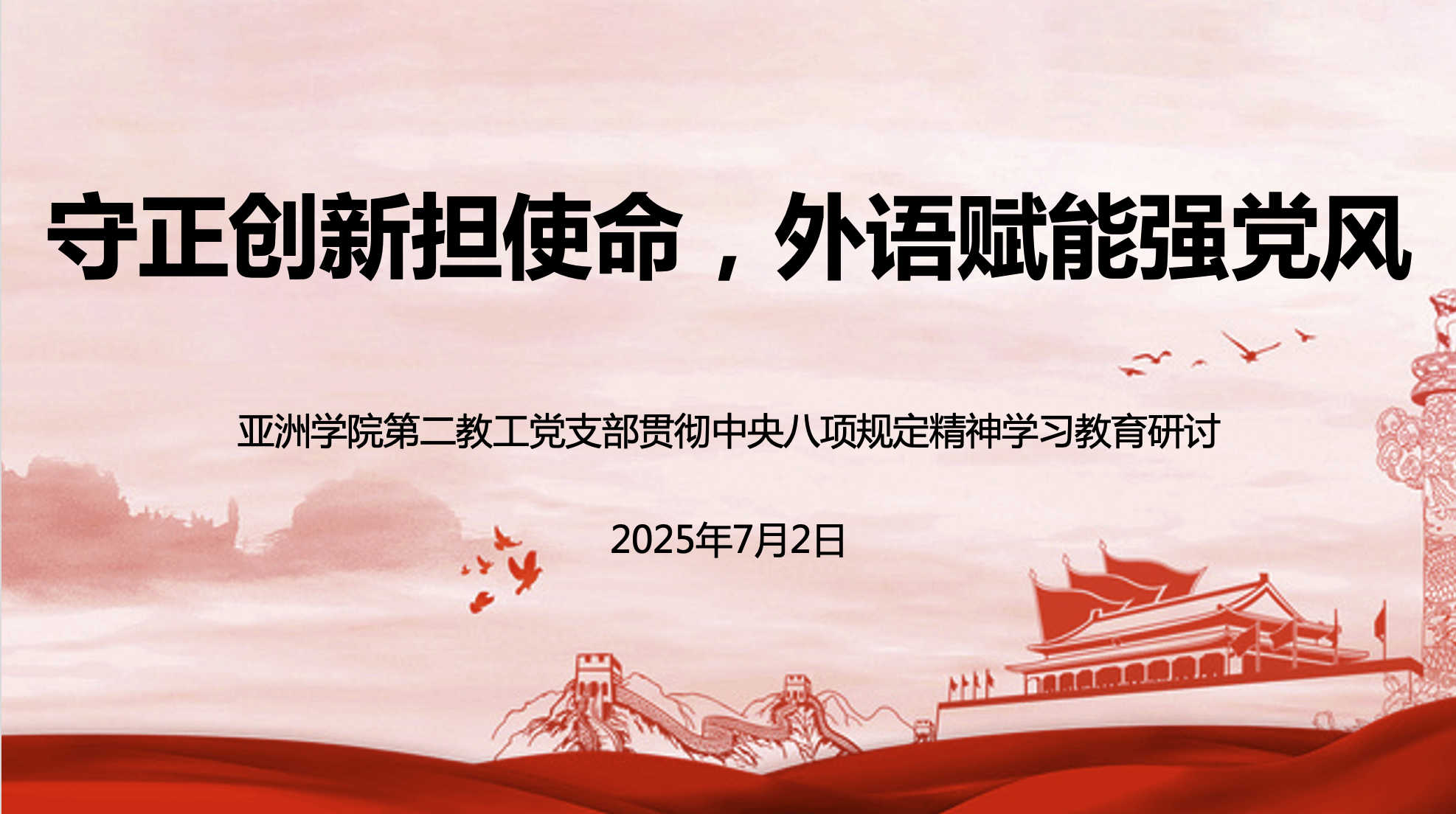 7月2日,开云kaiyun体育第二教工党支部围绕“守正创新担使命,外语赋能强党风”主题开展贯彻中央八项规定精神学习研讨活动。本次活动在7月1日“同上一堂课”活动之后,与会党员结合自身工作实际,充分交流、积极发言,畅谈学习体会,交流思想认识。活动由支部书记曾琼主持。