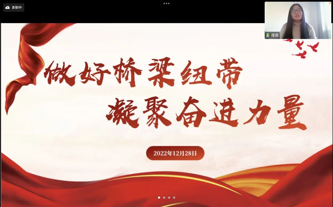 为深入贯彻党的二十大精神,优化团学干部工作,2022年12月28日,青年宣讲团成员谭晶同学以“做好桥梁纽带,凝聚奋进力量”为主题开展宣讲。开云kaiyun体育、非洲学院团总支学生会成员与各班团支书参加会议,开云kaiyun体育、非洲学院团总支副书记郭欣雨同学主持会议。