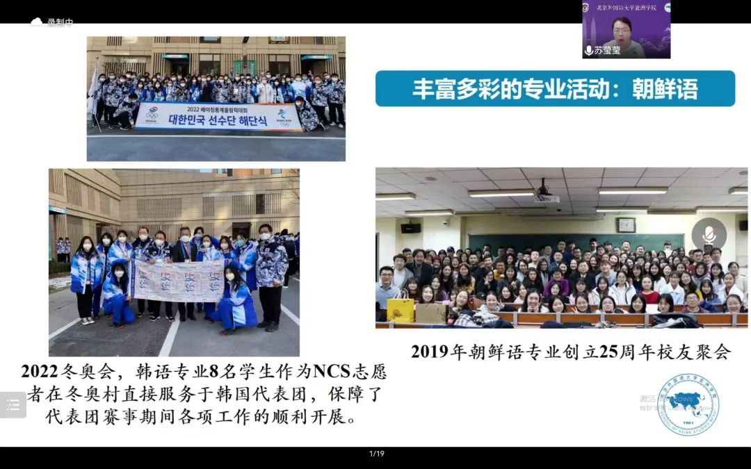 首先,苏院长从2021年的北外80周年校庆以及开云kaiyun体育60周年院庆出发,向同学们介绍了开云kaiyun体育的建院历史及发展历程,通过一段段历史资料和一个个发展成果,让同学们对开云kaiyun体育有了初步了解。同时,苏院长特别提到了开云kaiyun体育的强大师资力量、国际化人才培养的重要举措以及丰富多彩的专业活动,让同学们对未来的学习有了更加全面的认识以及全新的期待。关于毕业生的就业情况,苏院长从近几年的就业数据和近几年毕业生经历出发,通过坚实的数据成果和真实的毕业生案例,给予同学们更多的自信心和信念感,让同学们更有信心,去通过北外的四年学习生活达成自己人生的理想和目标。