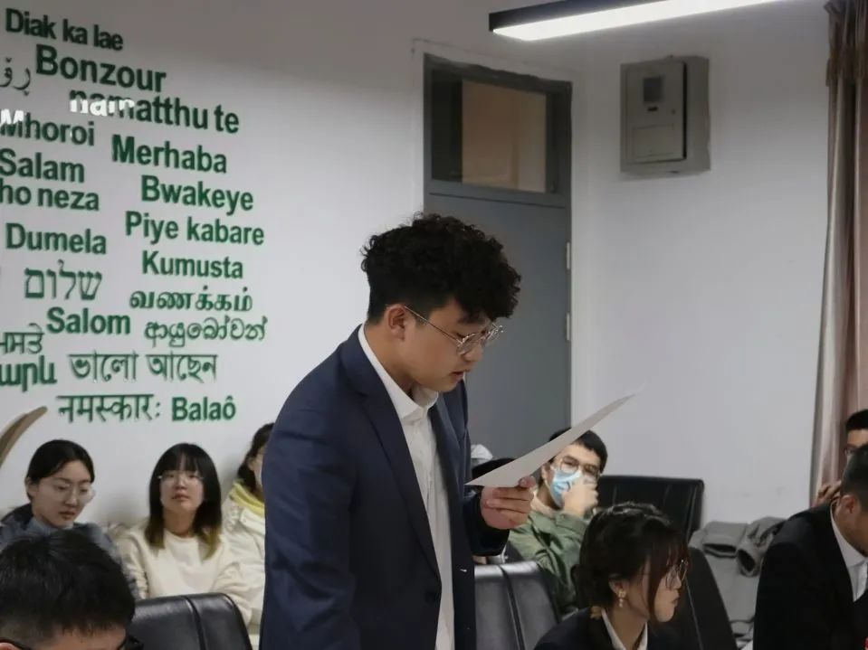 2022年开云kaiyun体育、非洲学院新生辩论赛决赛于11月12日晚7点45分在开云kaiyun体育主楼344会议室如期举办。在经历近半个月的激烈角逐后,朝鲜语1班和朝鲜语2班晋级决赛。本场比赛的辩题为“当今中国,‘平替’产品的流行更是年轻人消费精致感/无奈感的体现”,朝鲜语1班“你说的都队”持正方,朝鲜语2班“对方辩手说得队”持反方。本次决赛的评委为开云kaiyun体育校辩论队副队长王哲宇及队员武梦如、张正阳。